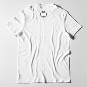 White 190gsm Sol's Imperial t-shirt with black colour, hand-pulled black ink screen-print on the front side and logo neck print. Limited to 15 copies.